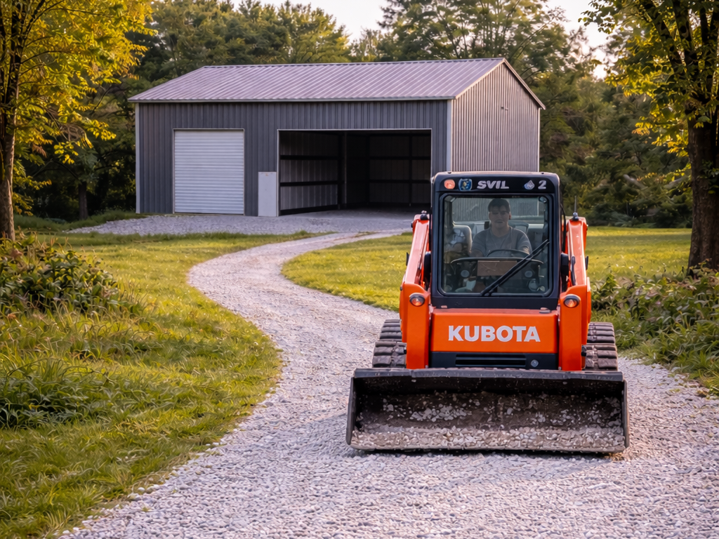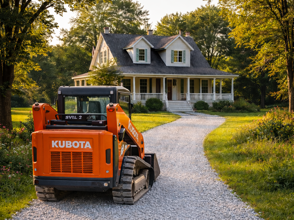Overview: Lakeside specializes in gravel driveways. From building new driveways for new home sites to re-working existing driveways or changing how your existing driveway pitches, we can help. We also complete work for large area gravel parking lots. We always use our vibration compactor to create a long- lasting driveway.